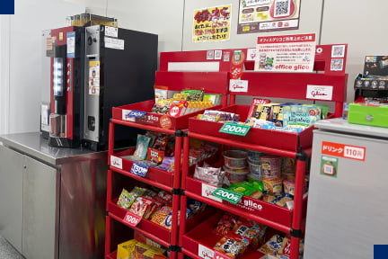 お菓子やドリンク・アイスが100円~200円で購入できます。 スマホ決済も利用できて便利です。 自席でお菓子をつまみながら作業している人もチラホラ見かけます。