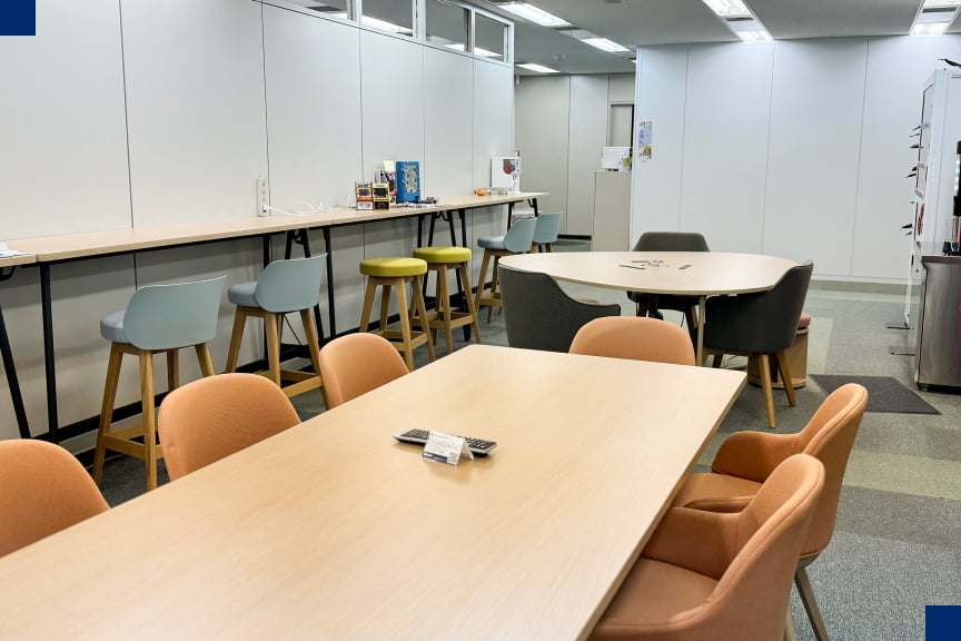 会議前の軽い打ち合わせや、一人で集中したい時に利用できるスペース。 カフェのように適度に静かで心地よい雰囲気が魅力です。